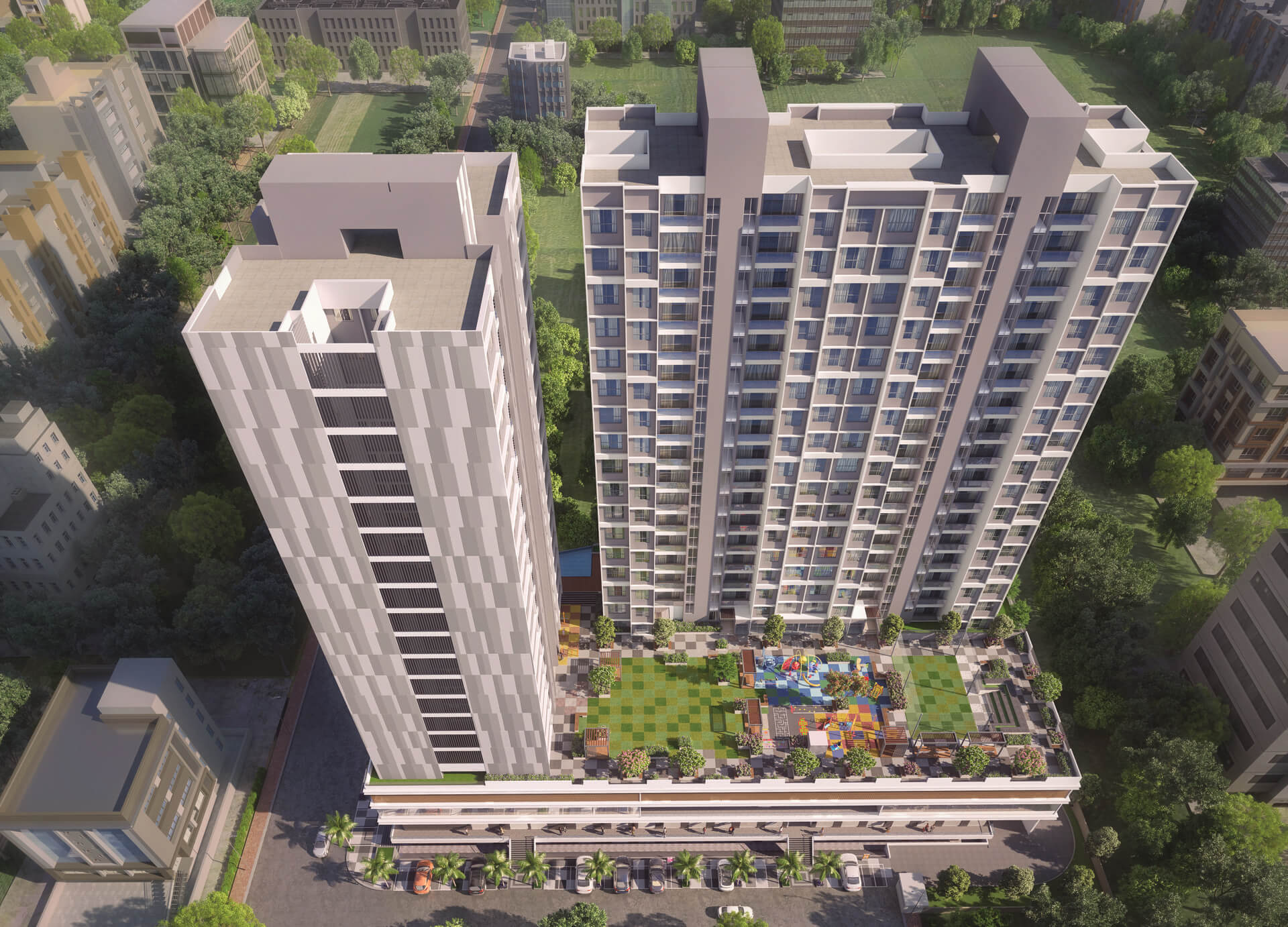 The Highgate’s high-rise residences are designed to offer a luxurious living experience. The 2 & 3 BHK interiors have ample room for furniture inclusion, with layouts that are well planned, breezy, and illuminated. With spacious balconies and no over looking residences, the higher floors offer 360˚ views of the city & nearby grounds.